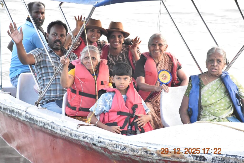Yesterday(29.12.2025) unfolded as a day of joy and remembrance as we took our elders on a short journey to Mahabalipuram and Muttukadu. We began early at dawn, setting out at 7:00 a.m., with laughter and quiet excitement filling the bus.